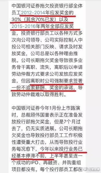 一位银河投行员工感叹:“连续五年奖金被拖欠,我们真是业内最悲催的投行了!”1