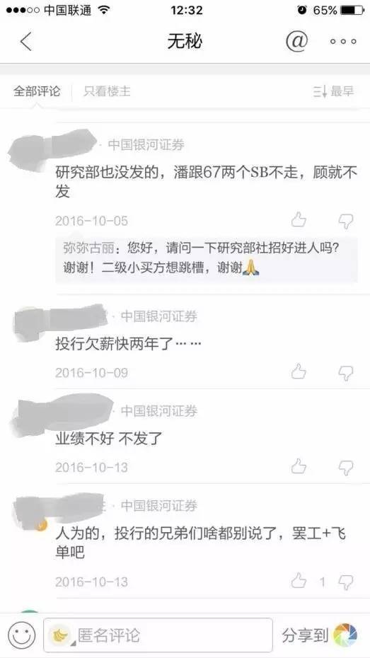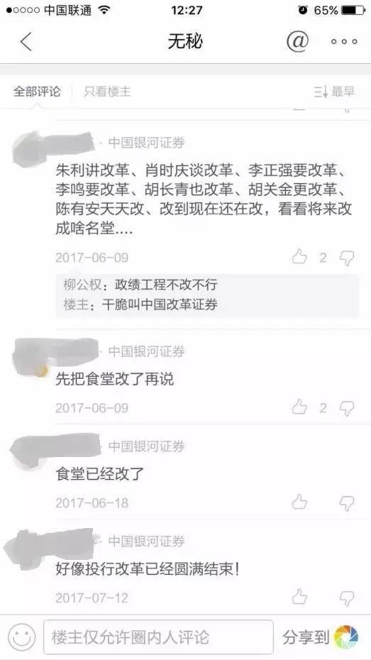 侦探君再上无秘一看,银河证券的员工可是炸了,侦探君随手截了几屏,大家感受一下,信息量巨大,分明就是银河证券版的权力的游戏啊!
