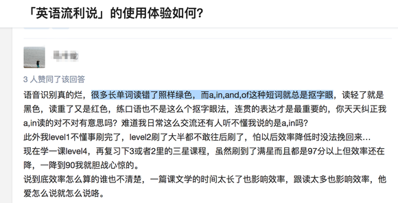 另外,英语流利说在语音识别中也存在着不少错误,比如在使用时,我某些长单词明显读错了,系统却显示正确,但of、and、a这些较短的连接词却总显示不正确。