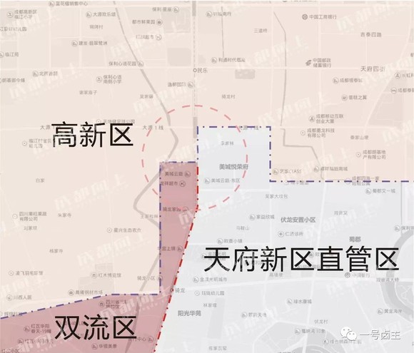 上文也提到过,韦家碾作为两区交界,相应的管理和规划都与各区的核心区相比,是一个弃儿,这种弃儿在更发达的南门也有出现,如剑南大道南段与天府五街交汇处,典型三不管、断头路,是双流、高新和天府新区的交界处,业内称为“城南金三角”。