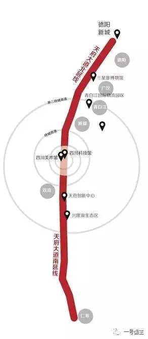 6、天府大道北延线,又称人民北路北延线,预计在2019年竣工。天府大道北延线,将串连成世界上最长最美的城市主轴,南到眉山仁寿,北达德阳,双向八车道再加四个辅道….