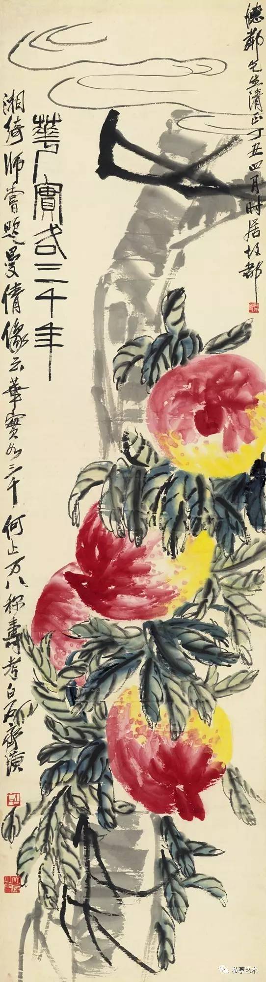 大涤子尝云,此道有彼时不合众意而后世鉴赏不已者。有现时轰雷震时,而后世绝不闻问者。人奈我何。辛酉六月六日白石老人制并记。