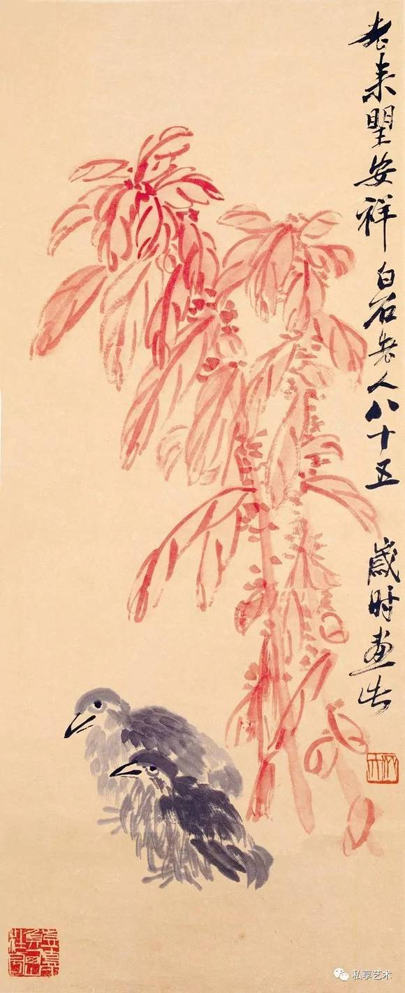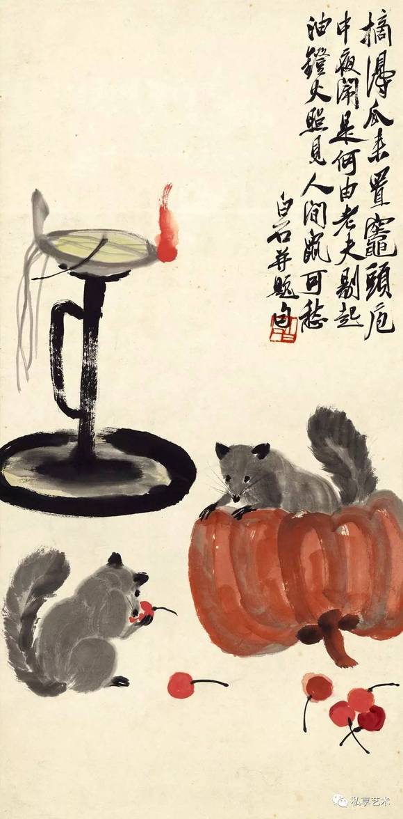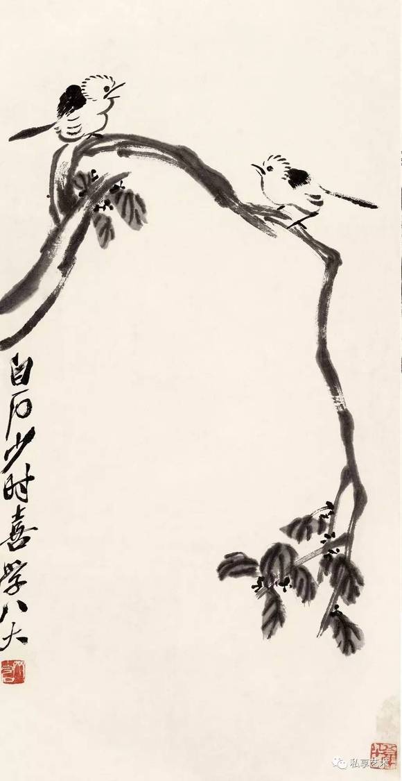 齐白石之所以是齐白石,就因为他曾经是或者就压根就是一个"乡巴佬",按今天的话说,是一个勤劳朴实的老农民。当他具备了一定的文化修养,成为一名艺坛巨子时,他也没有忘记他是一位"湘上老农"。实际上,他是一位有修养的乡下人,或者说是来自乡间的文化人;他是一位攀上了艺术高峰的农民,或者说是保持着农人本色的伟大的艺术家。在他那些精妙绝伦的艺术作品中,特别是在"衰年变法"之后的作品中,分明映照着他的乡心、童心和农人之心,这无疑都是其真心即本心的流露。