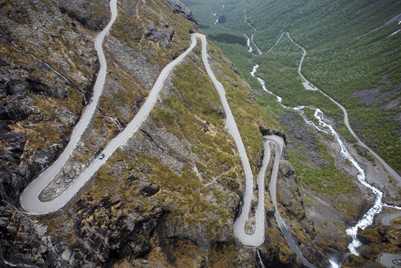 在挪威语中,“Trollstigen”意为“旋转的梯子”。绰号为“精灵之路”的托罗尔斯第根平均坡度达到了9%,全程有11个发卡弯。尽管这条公路对司机来说是个考验,但是沿途的风景绝对让人过目不忘。行驶在托罗尔斯第根山路之上,驾驶者可以聆听斯蒂戈佛斯瀑布奔流之下发出的美妙声响。