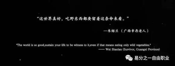 她说的那句:“这个世界真的好,吃野东西也要多看看”,我想她更想看到的是:日本人为他们的罪行还给她一个天公地道。