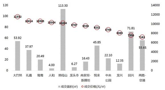 图:中航小镇成交面积及价格