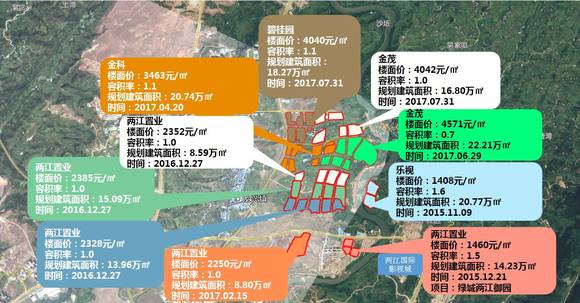 ● 终迎品牌房企关注:长期以来,龙兴地块主要以两江置业成交为主,今年二季度开始,品牌房企开始入驻龙兴、金科、金茂和碧桂园先后在龙兴拿地,其中金茂斩获两宗地块。2017年6月龙湖宣布与两江置业合体打造天街,选址H分区,主要为两江置业2016年底所拿地块,二者将共同打造交通、商业、生活一体化的共聚社区,或成为龙湖在重庆的第八个天街项目。