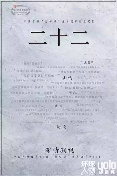 因为《二十二》,越来越多人开始关注这个群体,这对纪录片来说就是最大的成功。8月14日上映的这部纪录片《二十二》,真正的圆了郭柯让更多人关注到慰安妇群体的梦想。