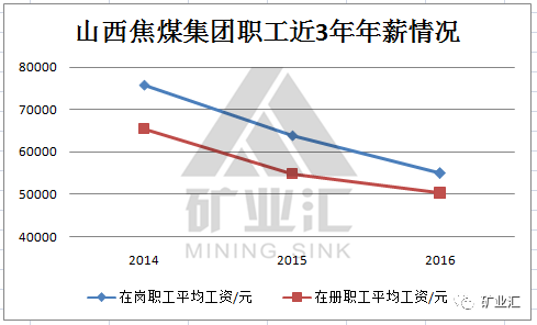 2017年7月11日山西焦煤集团公司公布了2016年度财务等重大信息,其中2016年度山西焦煤在岗职工平均工资为54982元,在册职工平均工资50309元。连续三年下降!