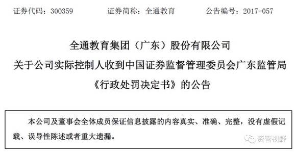 对于全通教育,网友曾有过经典评价,说全通教育就是全面通透的搞投资者教育,全通当年是A股第一妖股,一路涨上天,先把搞价值投资的空头教育一遍。随后一路下跌了80%,把互联网投机的多头也教育一遍,在下跌过程中还有不少媒体看好,于是顺手把媒体也教育了一遍。现在,证监会出面处罚,实际控制人自己也被教育了一番,还罚了款。