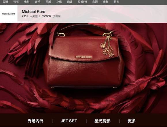 轻奢品牌Michael Kors在豆瓣开通了“豆瓣品牌小站”。该小站除了覆盖中文官方网站的内容,还包括了品牌创始人为粉丝录制的一句问候和品牌的同城活动。2017年8月15日,支付宝平台和轻奢品牌Michael Kors初次试水合作,仅300秒150个MICHAEL KORS全球限量新款被抢订一空。Michael Kors的做法,不仅抓住了内容营销渠道,还切入了年轻人的支付场景和流量入口,值得很多奢侈品参考。