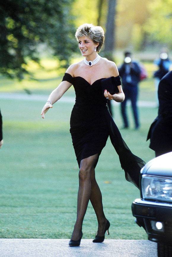 当时查尔斯被丑闻淹没,刚刚公布和卡米拉的婚外情,而戴安娜就穿着这条小黑裙出席在伦敦的派对。