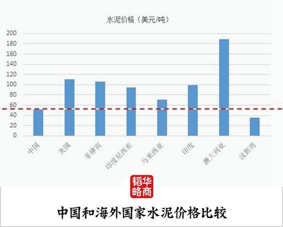 中国水泥研究院的最新数据显示,即使按照国内目前较高的价格350元/吨计算,国内水泥价格折合美元约51美元。除波斯湾外,其余国家地区水泥价格均远高于中国。美国、菲律宾的水泥价格几乎是中国的两倍,澳洲则更高,是中国的三倍还要多。