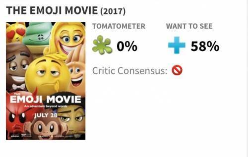 然而,作为世界上最火爆的表情包,登上银幕后的表现,却并不让人满意。烂番茄新鲜度0分,MC15家媒体平均打分9分(百分制)。这样的评分毫无悬念地让表情包大电影《表情奇妙冒险》摘得了“烂片之王”的“桂冠”。
