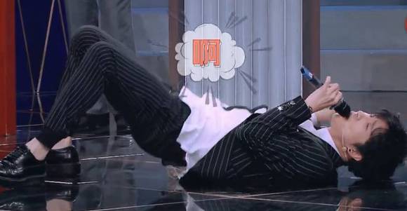 薛之谦立刻说,我知道,弹幕在上面,我要在下面一点唱。于是“咚”一下倒地,趴在地上唱。