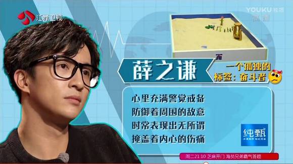 根据沙盘测验,心理医生给他贴的标签是“一个孤独的奋斗者”,认为他内心孤独而充满警觉,始终防御着周围的敌意,却用无所谓来掩盖内心的伤痛。