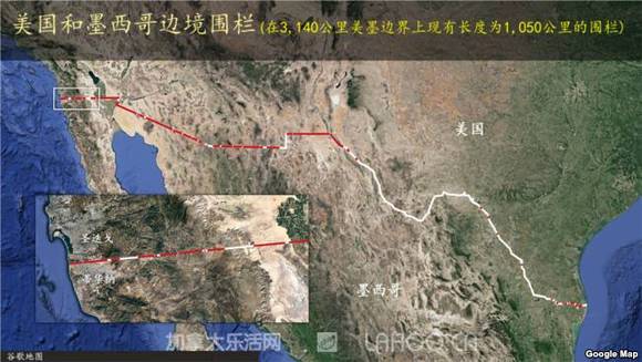图中红点为地道出口处,图下方为美墨边界