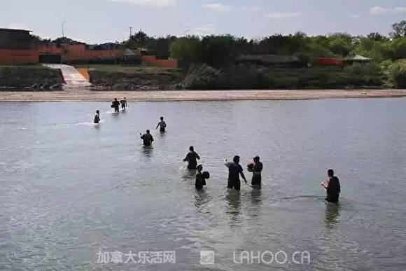 2017年3月,一群非法移民师徒淌过美墨边境的格兰德河,但被美国边境人员拦回去。