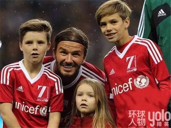 小贝的二儿子罗密欧、三儿子克鲁兹和小七,都穿着红色的球服,可见一家人都足球的热爱