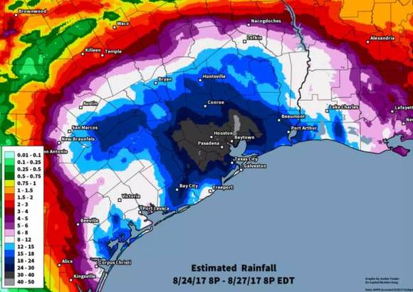 在哈维离开之前,休斯顿部分地区降雨将达到50英尺(15.24米),洪水将继续威胁德州东南部!