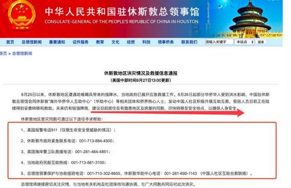 中国驻休斯敦总领馆会与休斯敦“海外华侨华人互助中心”(华助中心)等相关团体和侨界热心人士,发动中国人社区积极开展互助互救,受困人员目前正在陆续得到妥善转移和救助