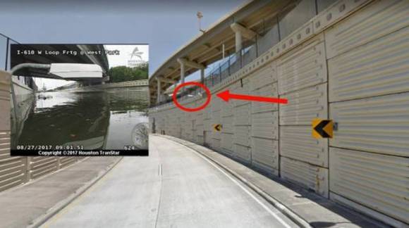 目前,休斯顿的水位,已经到达了高速上的路灯的位置!