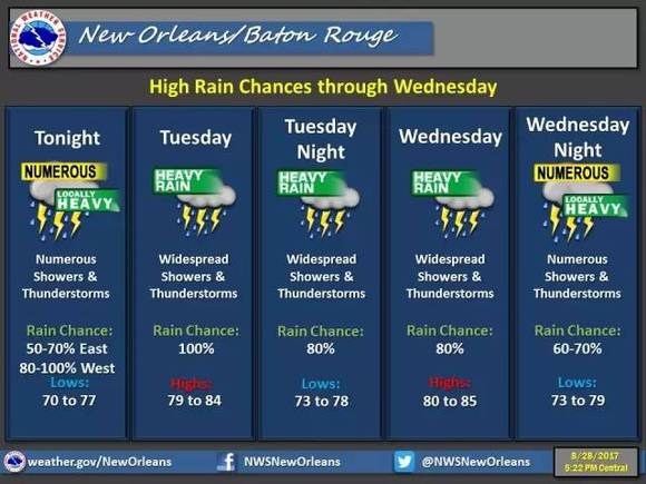 新奥尔良会遭遇持续暴雨,至少15英尺(约5米)以上英尺的降水。