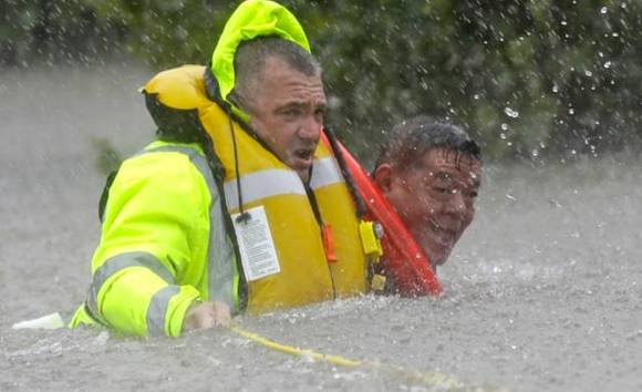 华人一家房子也进水过腰,人站在车顶上,车开始浮起来,电话快没电了,邻居早跑了,什么人都没有了,有人能帮吗?