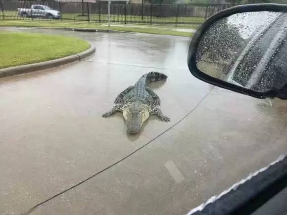 家住休斯顿的居民竟发现后院潜入“不速之客”—大鳄鱼