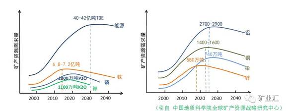 据预测,未来10年内,我国多数大宗矿产需求将达到峰值,到2020年,有25种矿产将出现不同程度的短缺,其中11种为国民经济支柱性矿产。