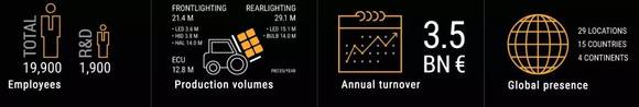 法雷奥(Valeo)是全球第二大、欧洲最大的汽车车灯照明系统跨国企业。今年2月公布的财报显示,2016财年,法雷奥集团共计实现165亿欧元的销售收入,其中车灯部门的业务收入为45.45亿欧元。
