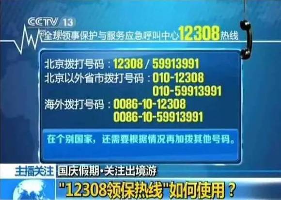 12308:外交部全球领事保护与服务应急呼叫中心,为中国公民提供24小时领事保护与服务的领事保护热线。
