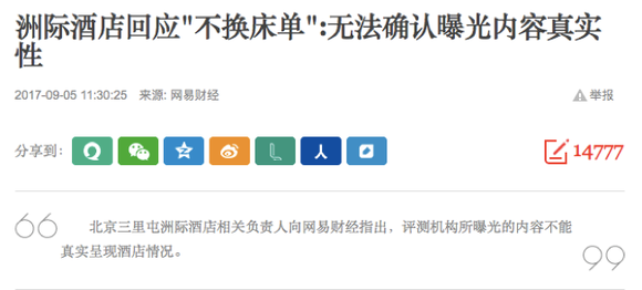 当然,采访也并非完全没有收获,网易财经记者采访三里屯洲际负责人时《洲际酒店回应“不换床单”:无法确认曝光内容真实性》,第一次有涉事企业对视频真实性提出质疑。