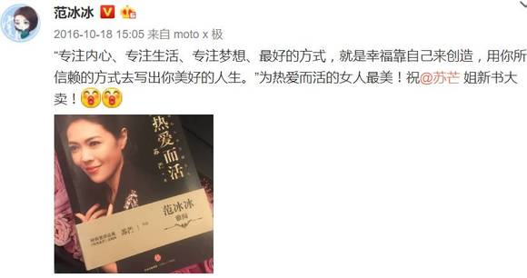 不论真相如何,在圈中拥有好人缘的苏芒怎么看都一直是赢家。范冰冰将其称为榜样,姚晨认为她很酷。写到这里,苏芒的故事大概是一碗励志鸡汤。