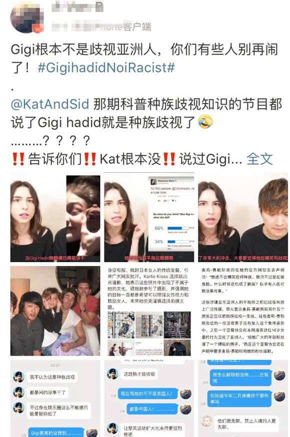 然后国外网友直接炸了,疯狂转发视频被炮轰:Gigi是在种族歧视,还刷起了话题“gigiisoverparty”,大意为“Gigi滚出娱乐圈”。