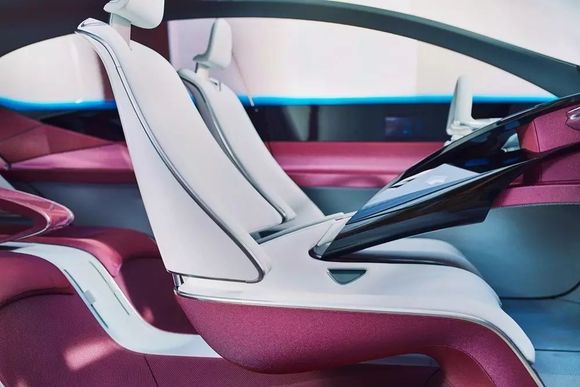 “纤薄悬浮”式仪表板与中控台的中部相连,仿佛自由悬浮在空中。“星空环绕”式中控台则是将驾驶者与前排乘客分隔开来的核心元素,在其上部的全息显示屏可显示包含3D导航、行车信息等大量服务功能;在其下部还有一块可以升起的3D互动屏,采用了触摸屏操作的方式。
