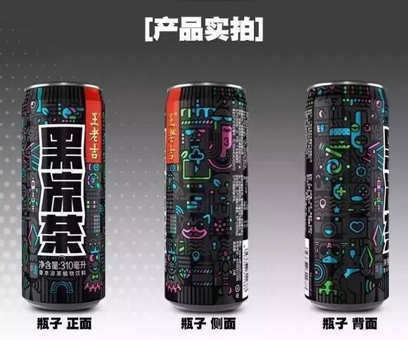 王老吉“牵手”设计师潘虎,一举拿下德国红点设计大奖。“黑凉茶”的包装采用黑色作为主色调,再用粉红、粉蓝、粉绿三种颜色绘制出各种图案元素。新包装上一共有88 种图案元素,这些图案包括爱心、游戏手柄、WIFI、猫咪等。