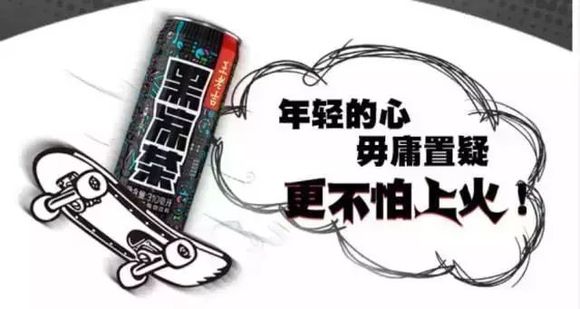 “黑凉茶”用这种宣传方式吸引年轻消费者,并提醒他们在加班、打游戏的时候也要喝瓶凉茶降降火。