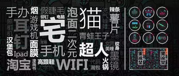从这些元素中,我们不难发现:王老吉也有一颗“不安躁动的心”。王老吉在设计这些图案时,加入了一些当下年轻人喜爱的元素,例如“宅”、“辣”、iPad等等。“黑凉茶”的包装设计将“电子风”和“嘻哈风”融合在一起,很像夜晚亮起的霓虹灯。