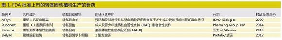 图5 FDA批准四类由转基因动植物生产的新药