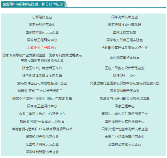 越是专业性的国家级资质、称号,对于企业来说往往越具价值。下面选址中国汇总了常见的企业可申请的国家级资质、称号名单,并对其中较为经典的几个国家级资质、称号进行简单展开,包括其相对应的政策参考、申报流程和注意事项等,供大家参考。