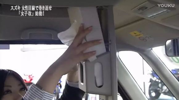 她们很快就发现了问题:这是Spacia展示车,内部上方储物处塞着毫无意义的不明物件,白瞎了巧妙的空间,小姐姐立刻换了盒纸巾上去……