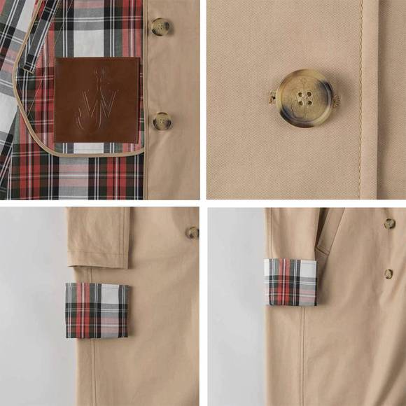 另一款是经典的人字斜纹呢大衣,含70%的羊毛,不算厚实,严冬穿估计会冷。面料手感so so,但做工细致,内侧有口袋,纽扣也有JW细节压纹,袖口可以系成蝴蝶结,其实这也是JWA常用的元素。