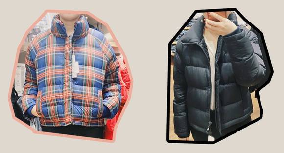 同样运用到格纹元素的还有羽绒服。前期做功课时Miss 烧饼有点欣赏不来,但看到look book还是决定挑战一下自我。试穿下来的结果是,嗯,确实不太好看( )。