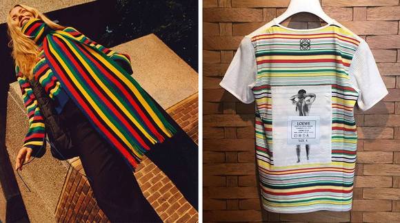 除了纯色款,它还出了彩虹条纹的,也是这一季里最引人注目的元素。因为JWA是个对彩虹条纹痴迷的boy,不光是同名品牌,连给Loewe的设计上都能看到它的影子。