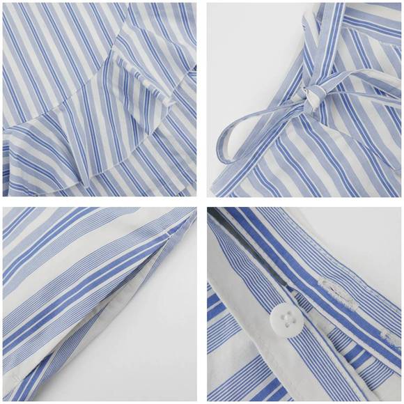 这条裙子一共有四种花色可选,每种都有不同的味道。牛仔风格偏潮一点,我原先很担心太邋遢,但实际穿上超好看,完全不会显胯宽。黑白条纹的比较低调,穿上很优雅,适合上班族。还有纯黑色可选。