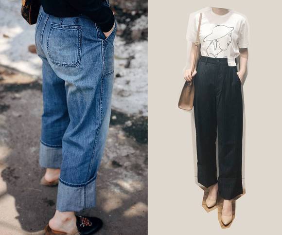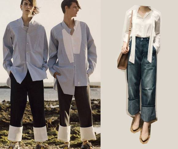 还有一条长裤,是我前期就下定决心要买的一条,而实物也确实没让我失望。虽然是高腰,但裤长太长。可以搭高跟鞋拖地穿,但官方的穿法是卷起来当九分裤穿。这也是JWA经典的裤型,就叫fisherman pants,捞鱼裤。