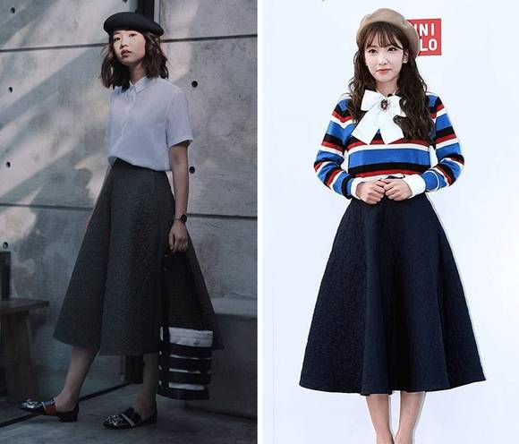 另一条压花A字裙是我今天的重点推荐。看单品图是不是觉得很像家里的席梦思,很厚很难驾驭?