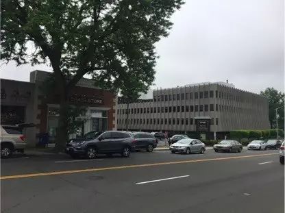 一个小型的办公区尽可能地通过了停车场就贴近了相关行业的公司和餐厅还有商店。