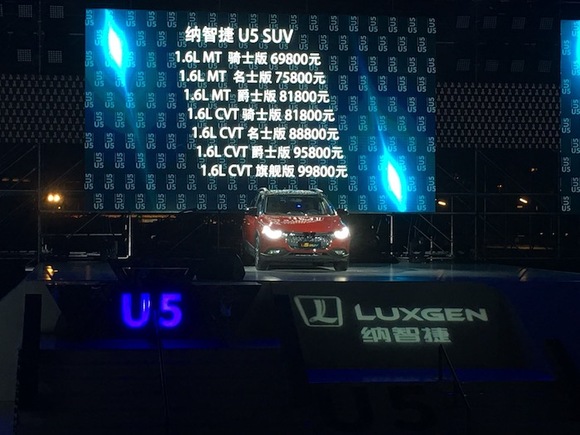 纳智捷全新小型SUV——纳智捷U5 SUV于9月27日晚在广州上市,新车将出搭载1.6L动力的7款车型,价格区间为6.98-9.98万元;此外还加推了3款特别版车型,售价区间为:8.28-9.68万元,此三款加推车型将于12月登场。